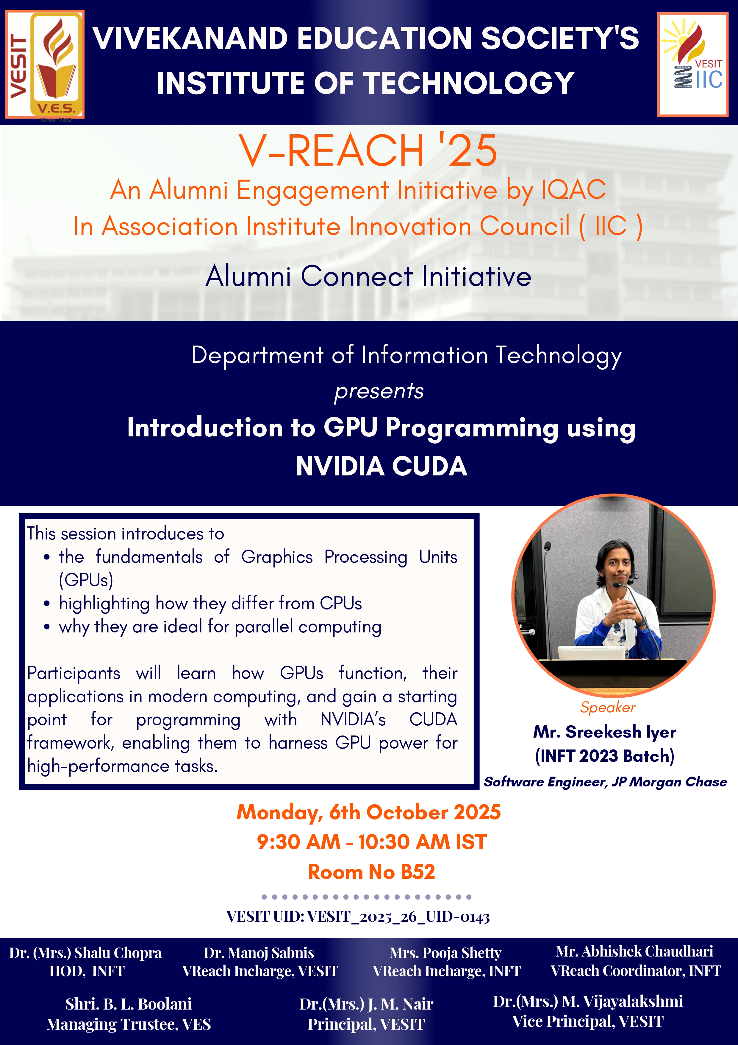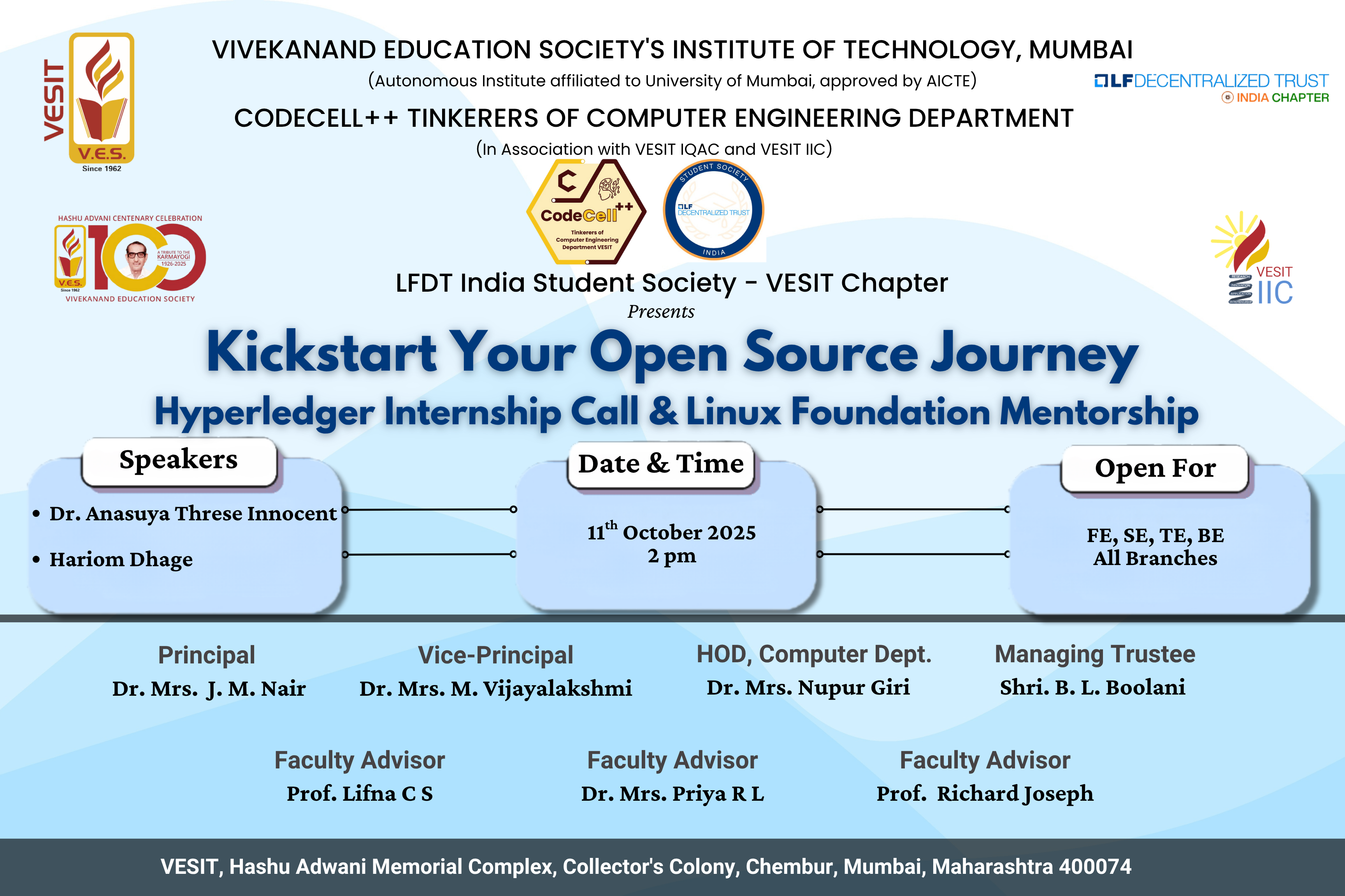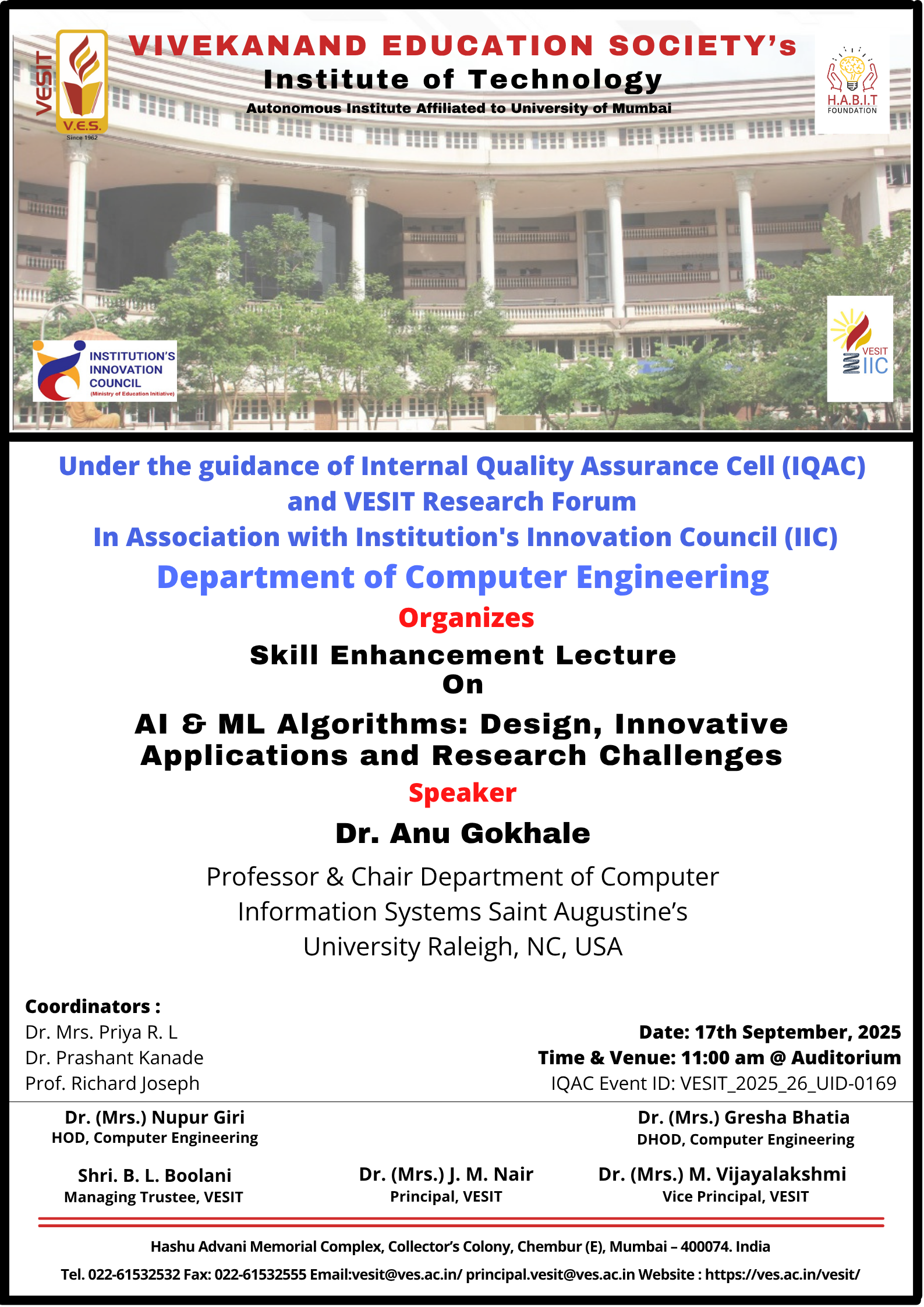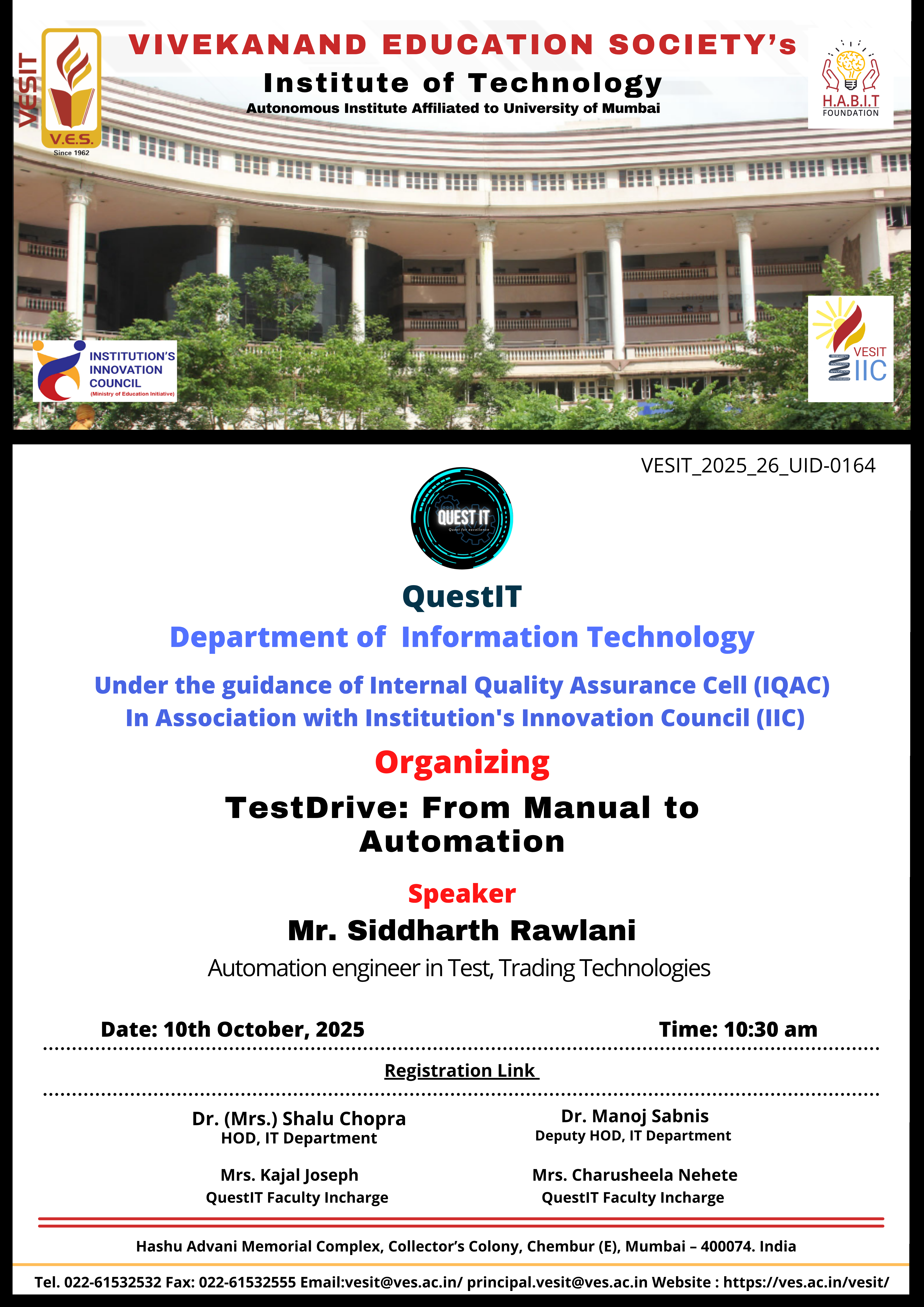 The Ministry of Human Resource Development (MHRD), Government of India has established ‘MHRD’s Innovation Cell (MIC)’ to systematically foster the culture of Innovation amongst all Higher Education Institutions. The primary mandate of MIC is to encourage, inspire and nurture young students by supporting them to work with new ideas and transform them into prototypes while they are informative years. MIC has envisioned encouraging creation of ‘Institution’s Innovation Council (IICs)’ across selected Higher Education Institutions. A network of these IICs is established to promote innovation in the Institution through multitudinous modes leading to an innovation promotion eco-system in the campuses. VESIT is one of these institutions which established ‘Institution’s Innovation Council’ in September 2019.